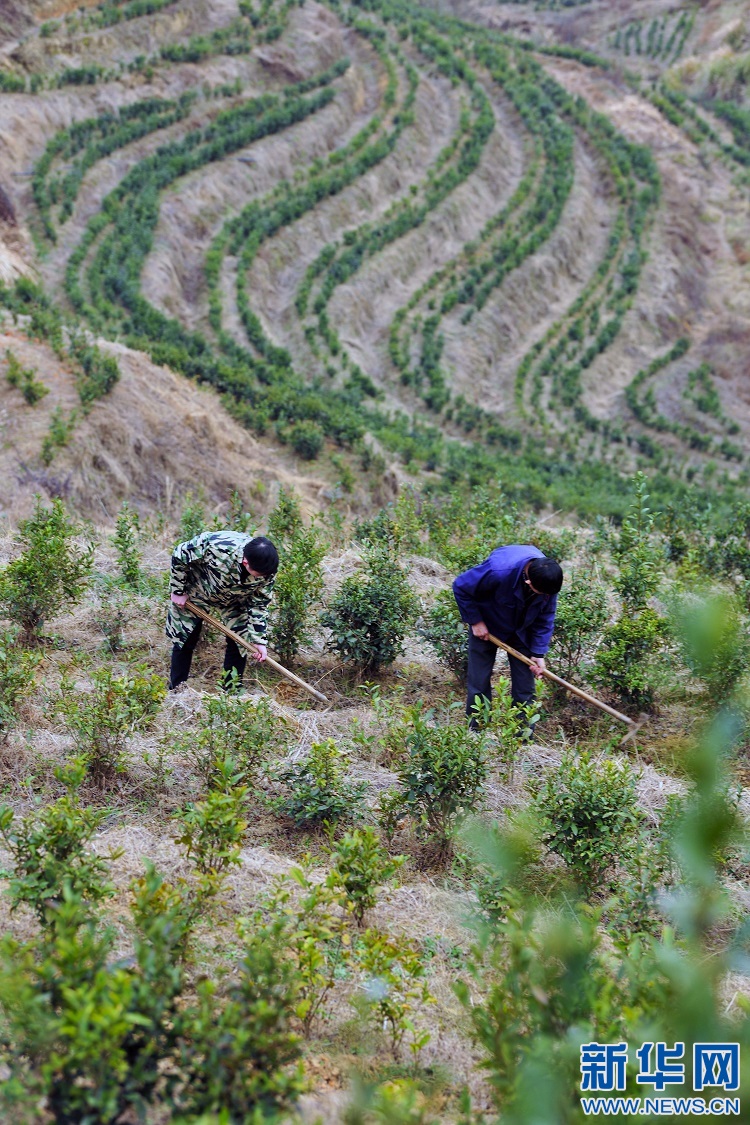 村民在茶葉基地除草。新華網(wǎng)發(fā) 鄧龍華攝