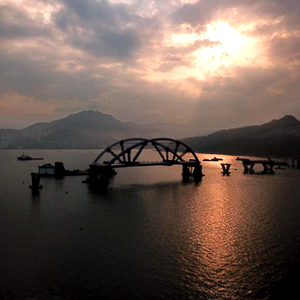 2月26日,從早晨7時(shí)開始,歷時(shí)5個(gè)小時(shí),首次利用海潮漲落的“浮托法”,70多位現(xiàn)場(chǎng)施工人員經(jīng)過緊張調(diào)試,將內(nèi)地預(yù)制好的雙拱鋼橋精準(zhǔn)對(duì)接并安裝在橋墩上。