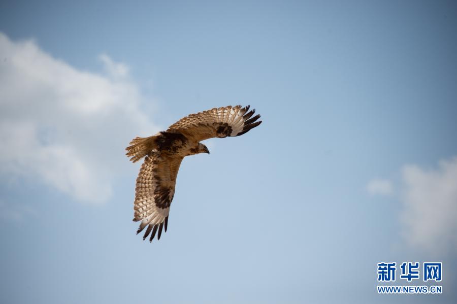 3月20日,一只大鵟被放飛后在空中飛翔。新華社記者 陳鐘昊 攝