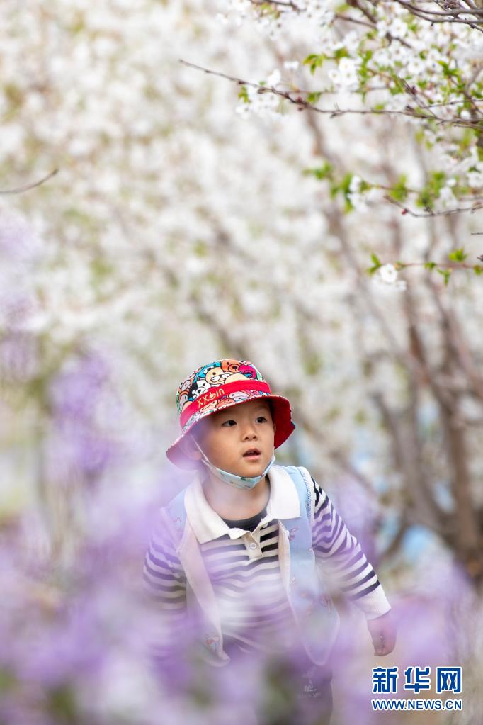 4月7日,小朋友在山西省太原市玉泉山城郊森林公園賞花。近日,山西省太原市玉泉山城郊森林公園栽植的近25萬(wàn)株各類(lèi)櫻花競(jìng)相盛開(kāi),吸引不少市民前來(lái)觀賞。新華社記者 楊晨光攝