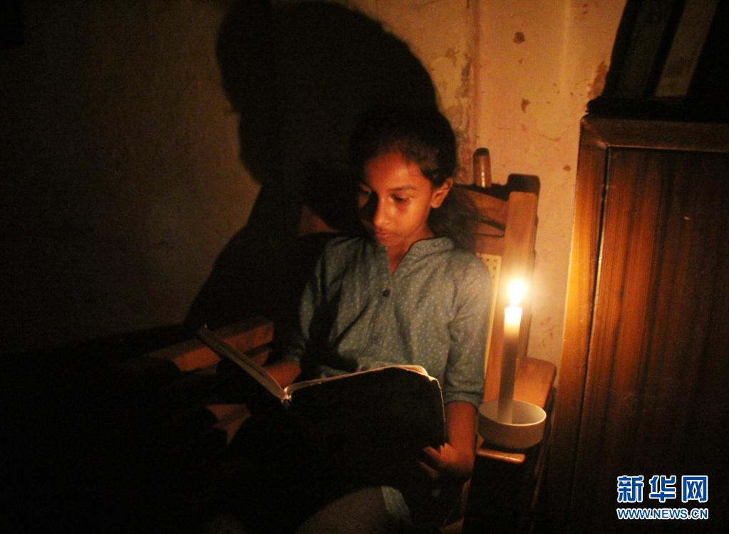 這是2020年8月17日,在斯里蘭卡科倫坡,一名學(xué)生在停電后依靠燭光繼續(xù)讀書。