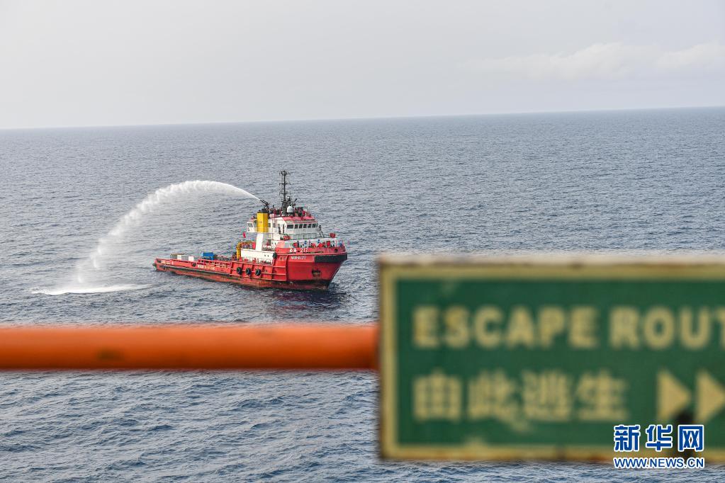 4月25日,為中國海油樂東15-1氣田運(yùn)送物資的拖船在南海北部海域參與該氣田舉行的應(yīng)急演練。