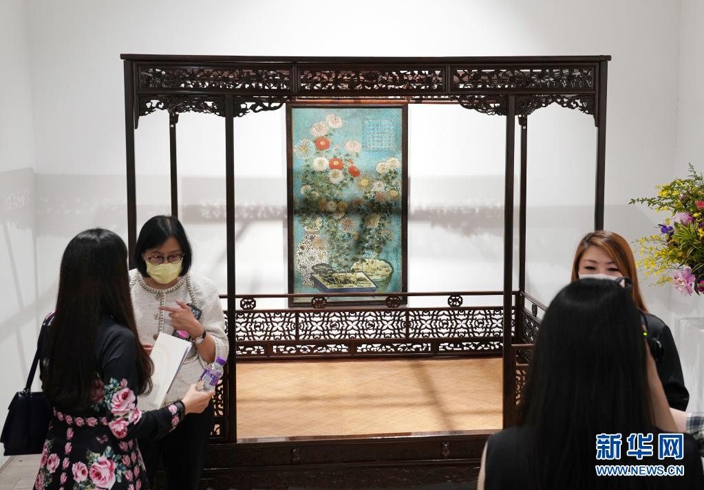 4月28日,工作人員向記者介紹展品。