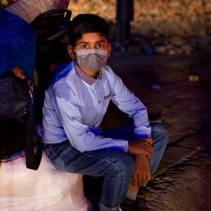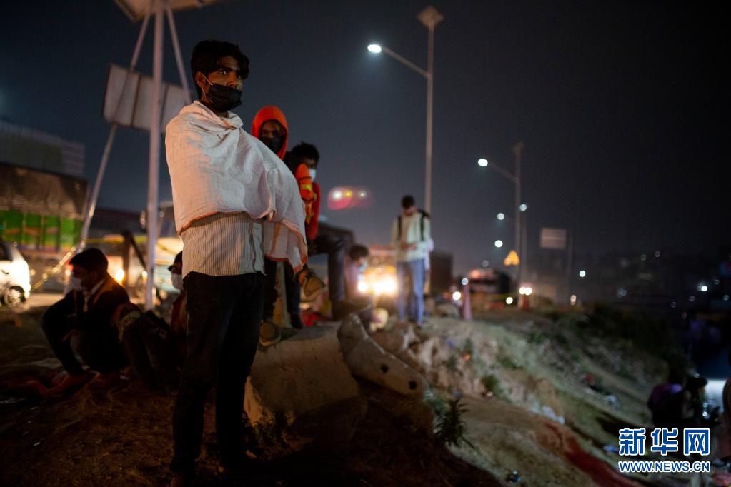 4月28日晚,人們在尼泊爾首都加德滿都的路邊等車,準(zhǔn)備在封禁措施實(shí)施前離開加德滿都返回家鄉(xiāng)。