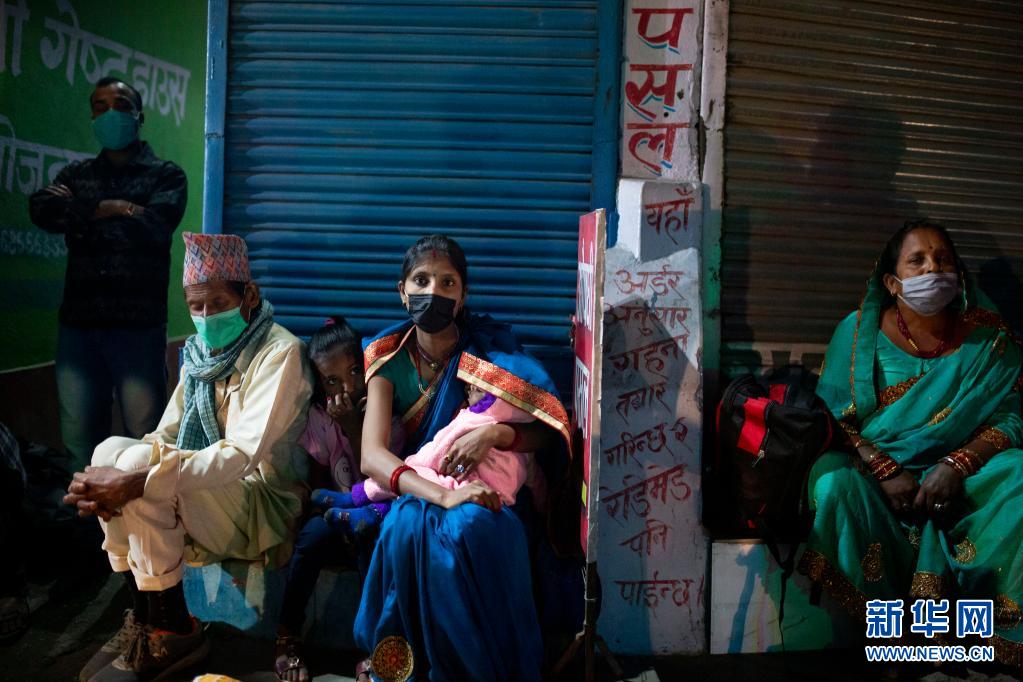 4月28日晚,人們?cè)谀岵礌柺锥技拥聺M都的路邊等車,準(zhǔn)備在封禁措施實(shí)施前離開加德滿都返回家鄉(xiāng)。