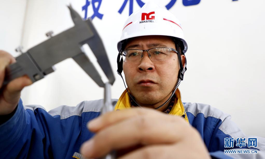吳保橋在測(cè)量拉伸后試樣的面縮率(資料照片)。