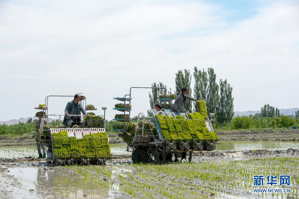進(jìn)入5月,新疆溫宿縣的11萬(wàn)余畝水稻進(jìn)入插秧期。稻田間,插秧機(jī)往來(lái)穿梭,一片繁忙景象。