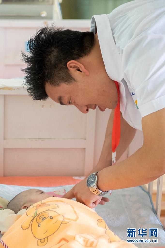 在太原市社會(兒童)福利院,黨龍祥在照看一名嬰兒(5月26日攝)。新華社記者 楊晨光 攝