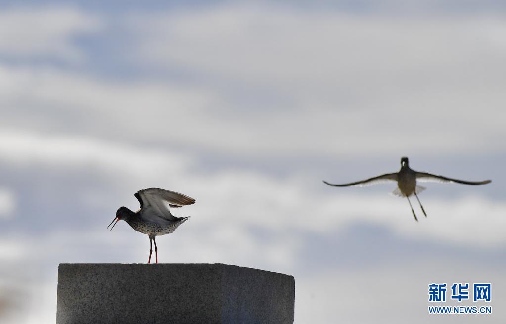 初夏,紅腳鷸在位于西藏拉薩的拉魯濕地國家級自然保護(hù)區(qū)內(nèi)起舞覓食。