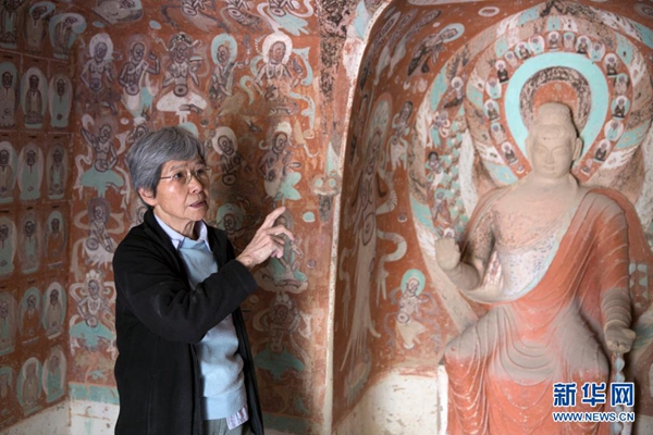 她是敦煌研究院名譽院長樊錦詩。1938年,祖籍杭州的樊錦詩出生在北京,自1963年大學(xué)畢業(yè)后,她便開始了與莫高窟長達(dá)半個多世紀(jì)的相守。在她和同事的努力下,莫高窟在1987年成為中國首批進(jìn)入世界文化遺產(chǎn)名錄的遺產(chǎn)地,并逐步成為世界文化遺產(chǎn)保護(hù)和利用的全球典范。