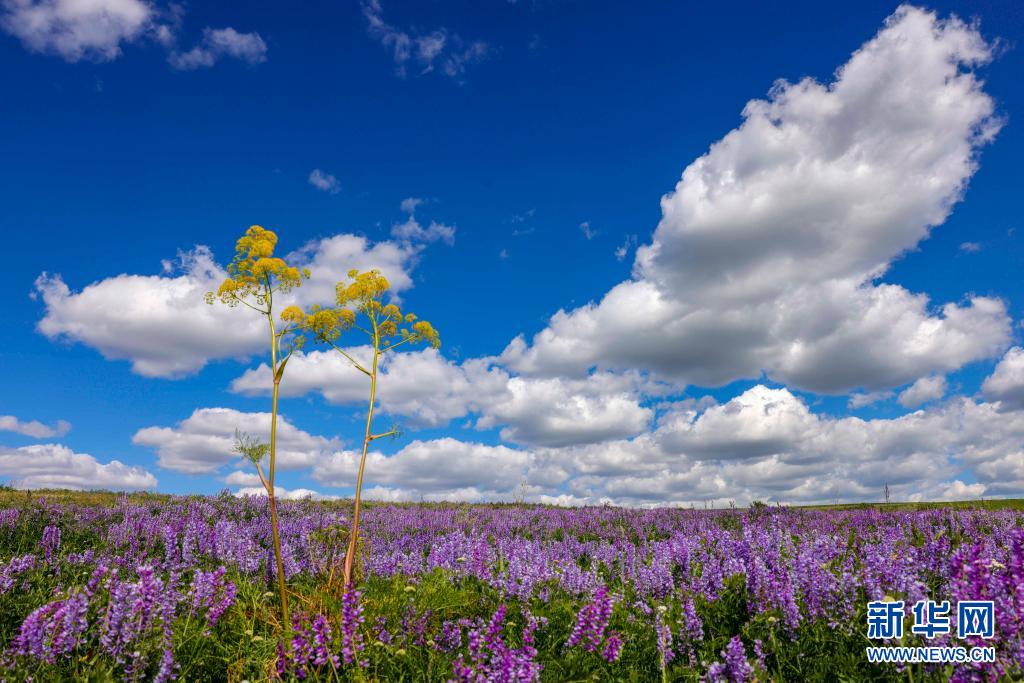 新疆裕民縣巴爾魯克山區(qū)夏牧場上的山花(6月14日攝)。