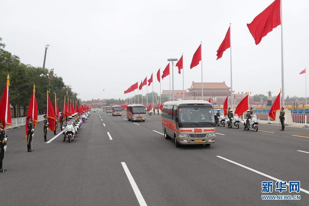 這是“七一勛章”獲得者集體乘坐禮賓車(chē)從住地出發(fā),由國(guó)賓護(hù)衛(wèi)隊(duì)護(hù)衛(wèi)前往人民大會(huì)堂。