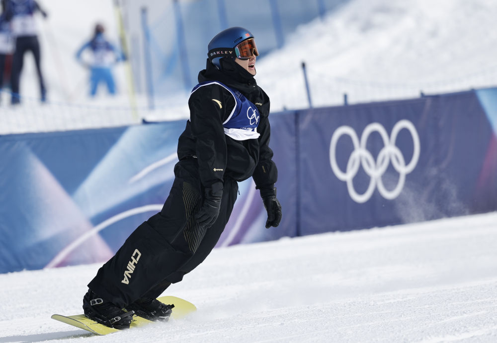 2月18日,中国选手苏翊鸣在比赛中。新华社记者 王鹏 摄