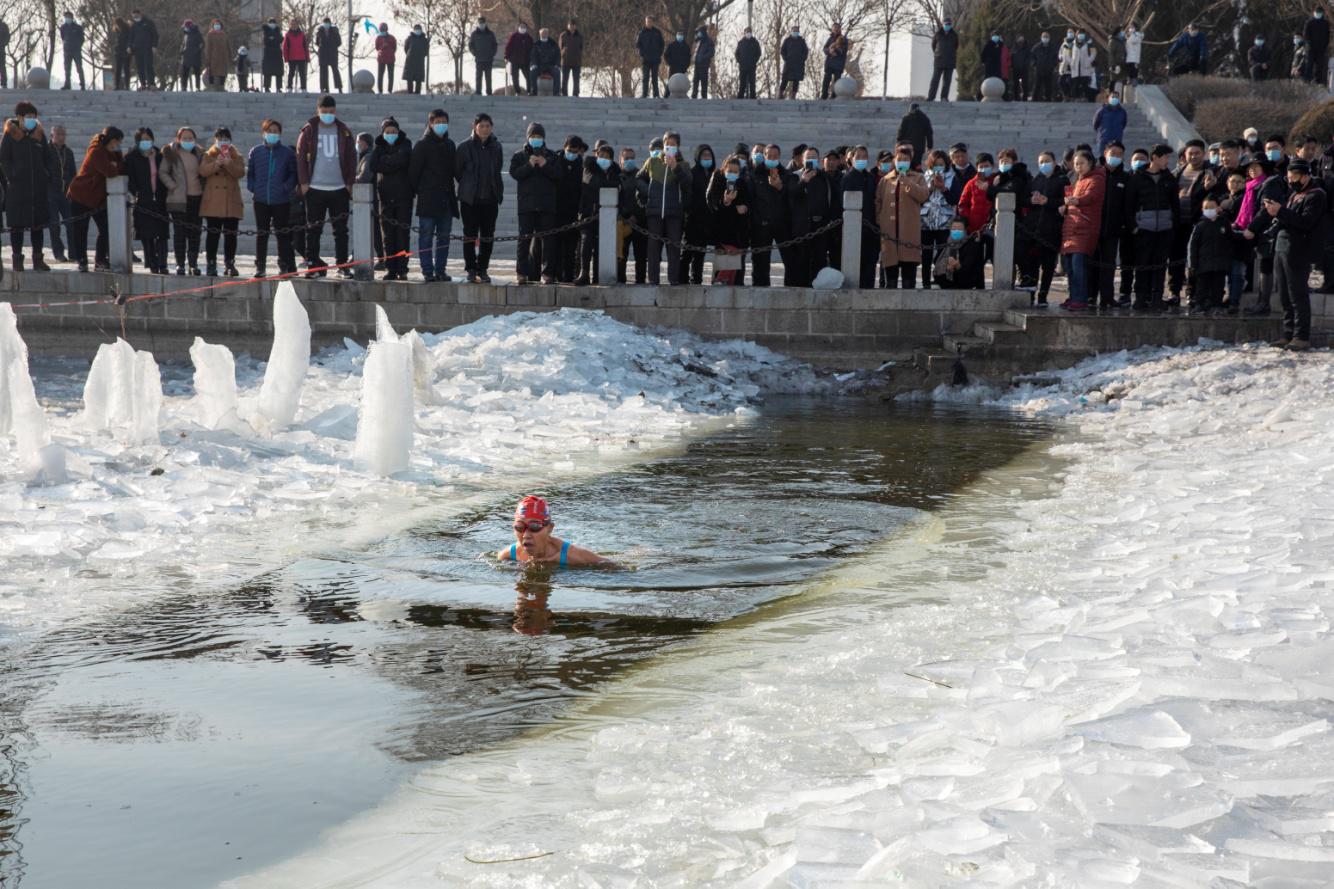 吃完再說(shuō)玩,北國(guó)凌源,這里可從來(lái)不貓冬,他們把冰天雪地當(dāng)成了激情飛揚(yáng)的秀場(chǎng)。大凌河的冰面愣生生被鑿出一條“長(zhǎng)河”,成為冬泳愛(ài)好者的基地。
