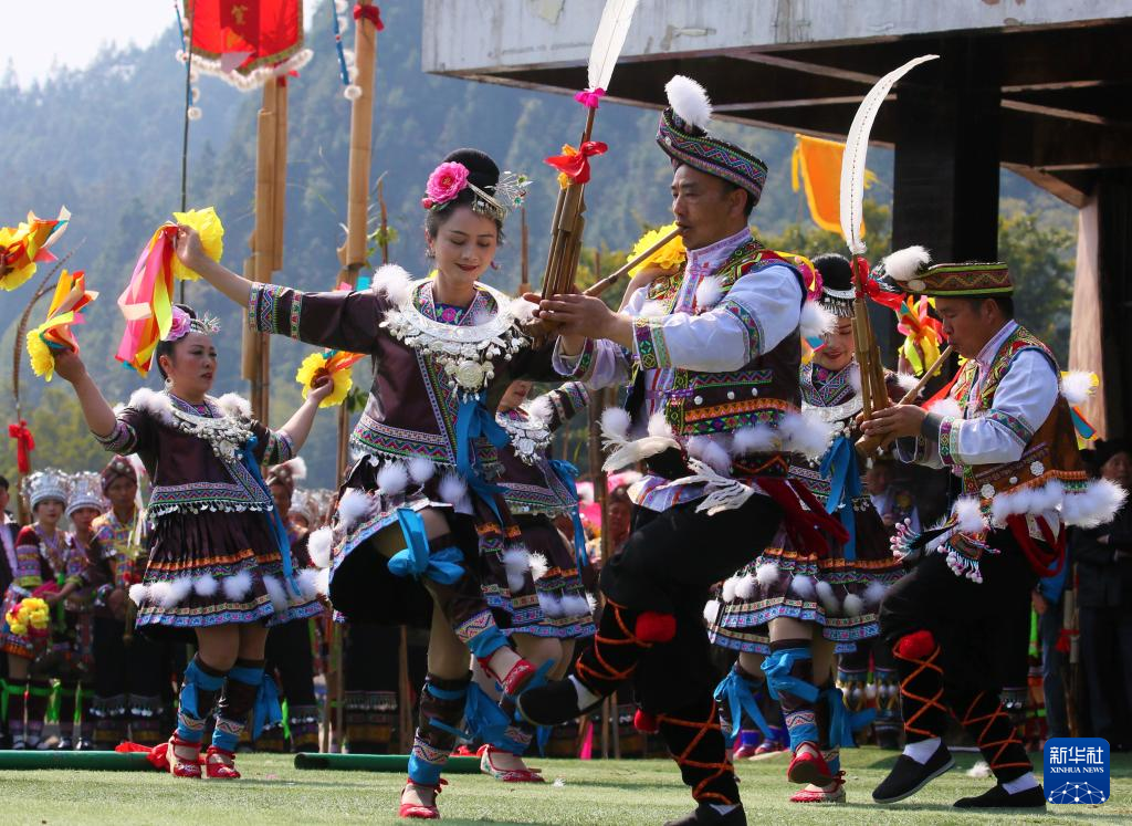 2月20日,在广西融水苗族自治县洞头镇洞头村,苗族群众在跳芦笙舞。