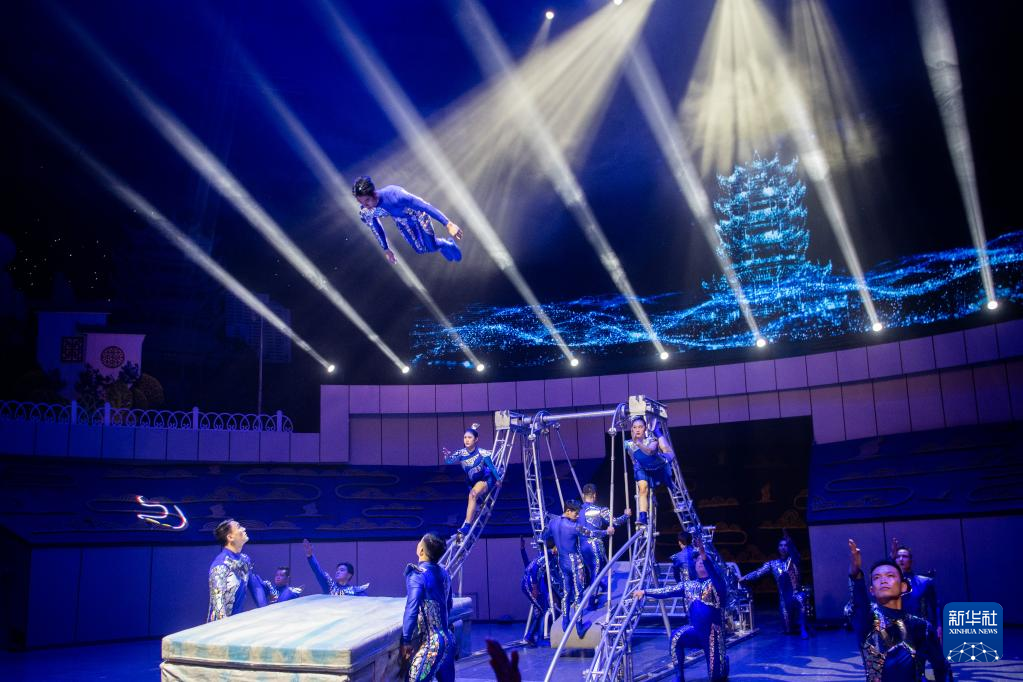 3月24日,演员在第十四届武汉国际杂技艺术节开幕式上表演《英雄之城》。