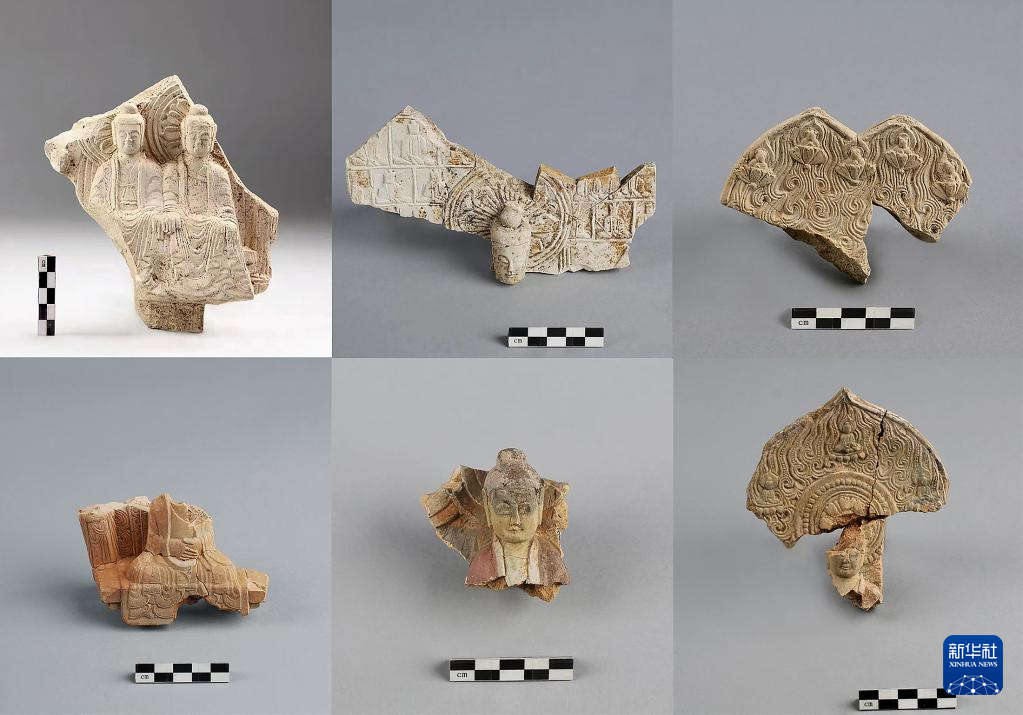吉林珲春古城村1号寺庙址出土的佛像残片(拼版资料照片)。