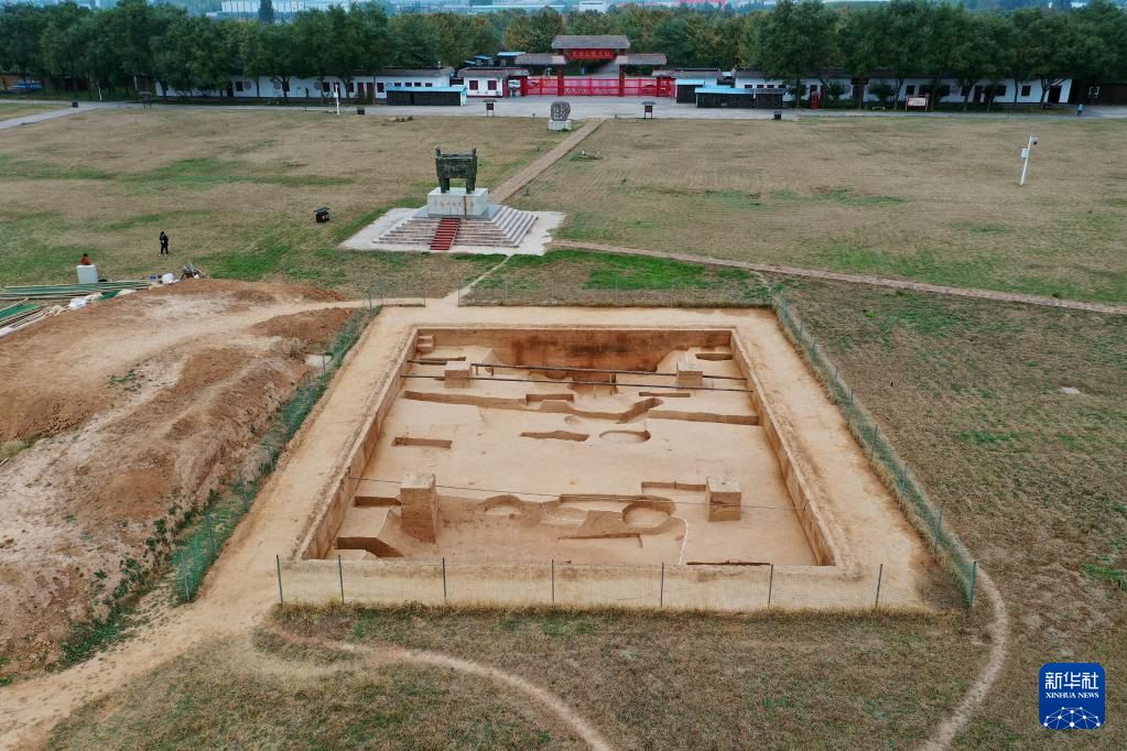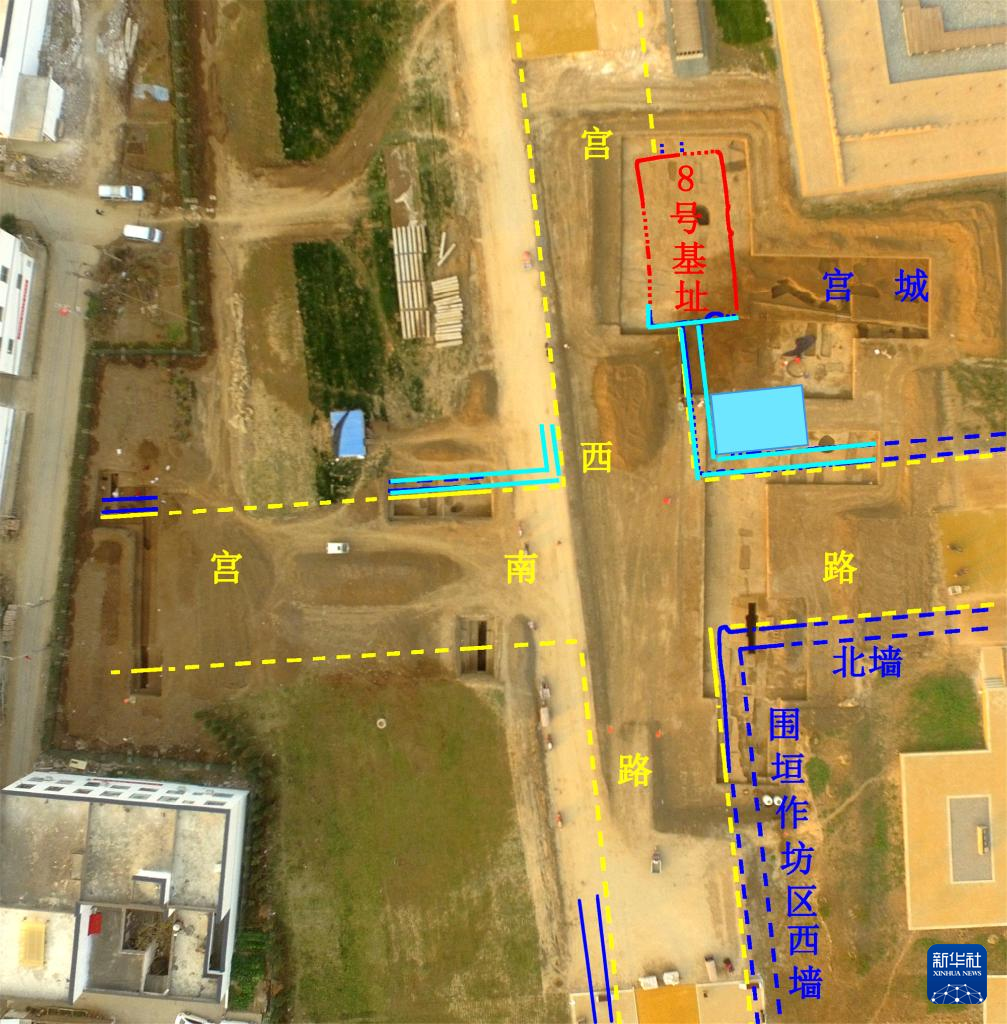 河南偃师二里头都邑中心区西南路口的新发现航拍示意图(资料照片)。