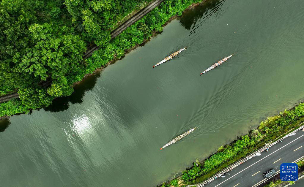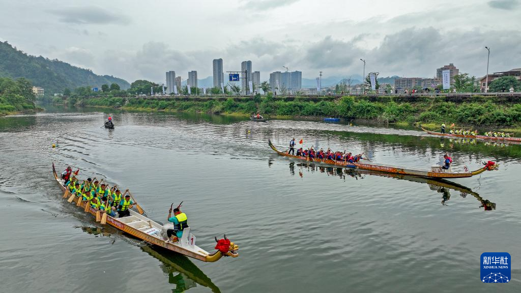 当日,浙江省建德市乾潭镇举办胥溪清凉季乡村传统龙舟赛,迎接端午节。近年来,乾潭镇充分挖掘自然山水的优势,将体育旅游、生态旅游、乡村度假有效结合,积极推进乡村旅游和乡村振兴。