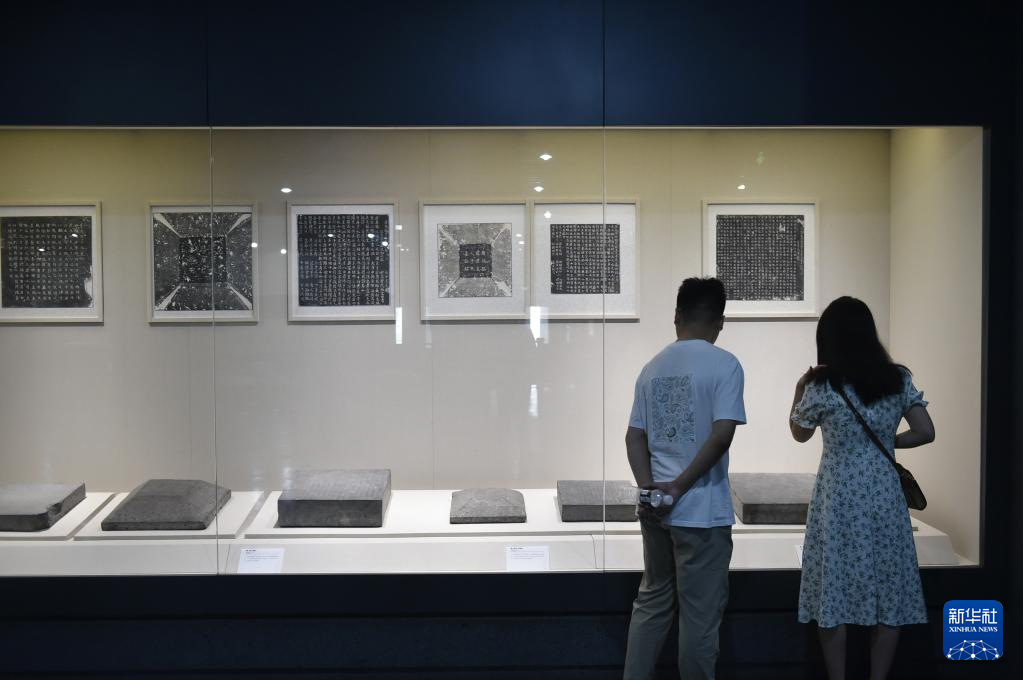 6月26日,游人在河南省安阳市殷墟遗址甲骨碑廊游览。