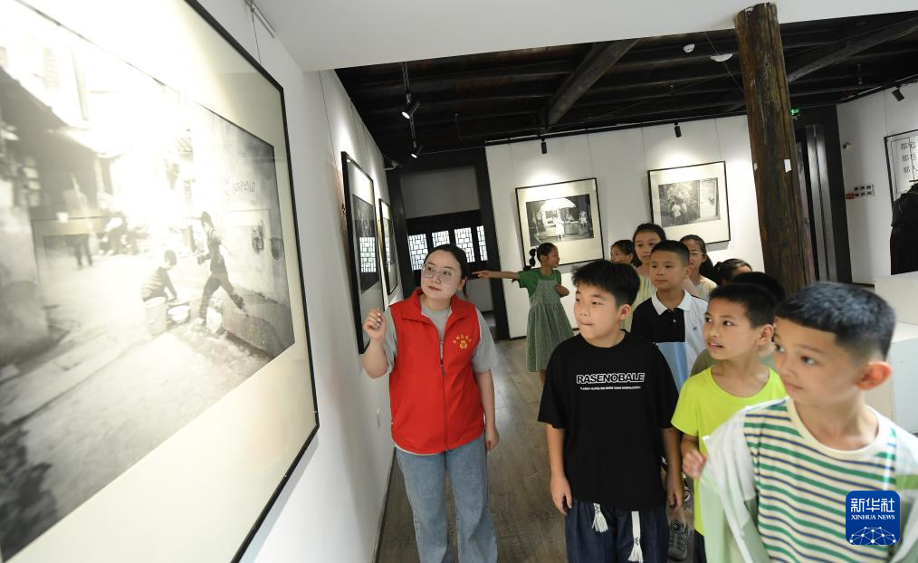 7月19日,青少年在小西街一家美术馆观看老街历史照片。
