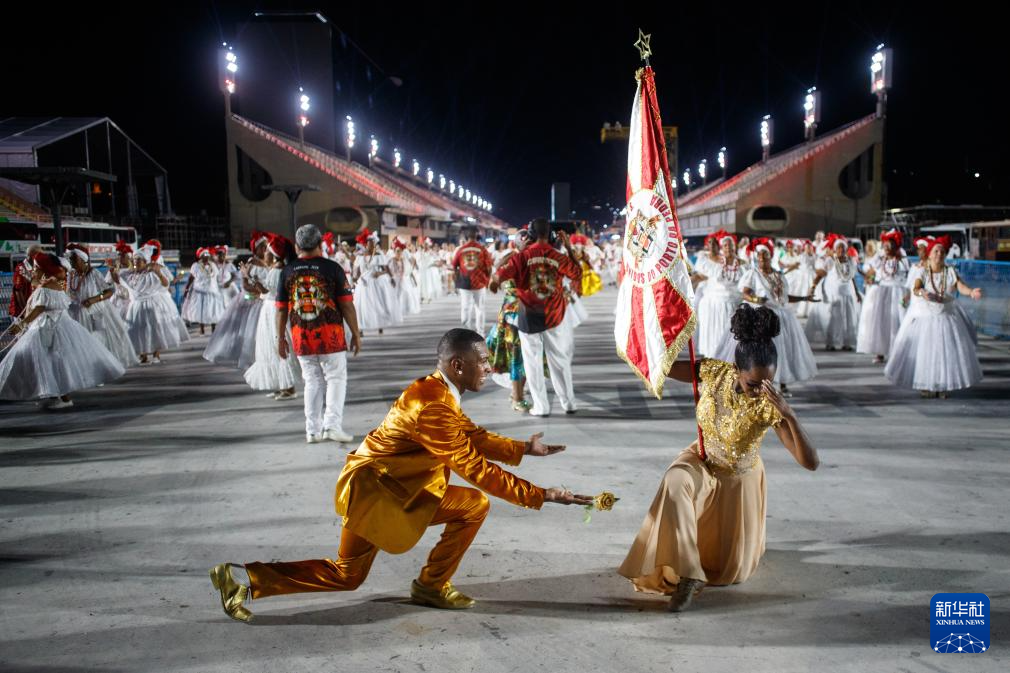 当地时间1月7日晚,巴西里约热内卢的桑巴舞校开始在桑巴大道进行狂欢节彩排。