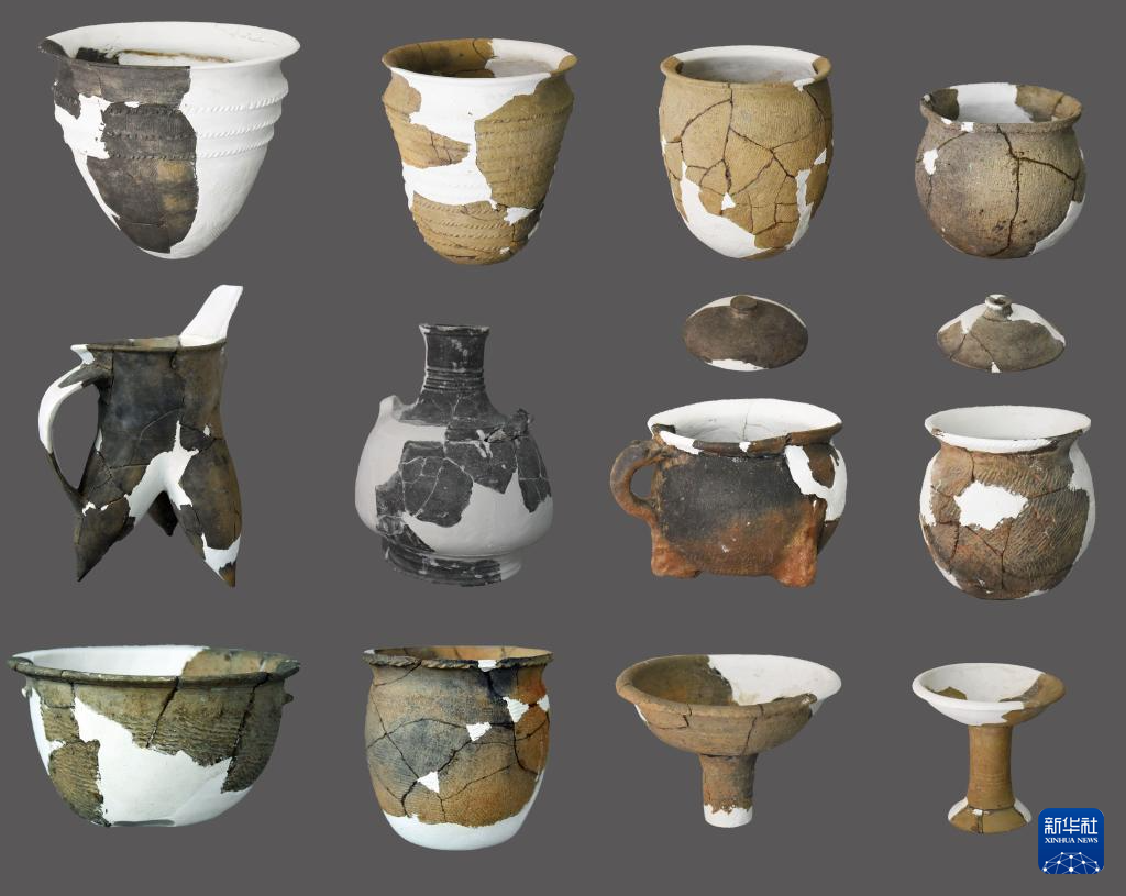 浙江衢州皇朝墩遗址出土的部分陶器(资料照片)。新华社发(国家文物局供图)