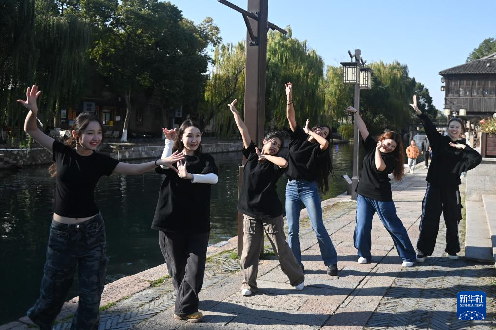 当日,在浙江省湖州市南浔区参加2024年中国大学生街舞锦标赛的学生代表受邀来到南浔古镇。学生们以古镇为舞台,即兴表演多场激情四溢的街头舞蹈,为游客带来独特的体验。
