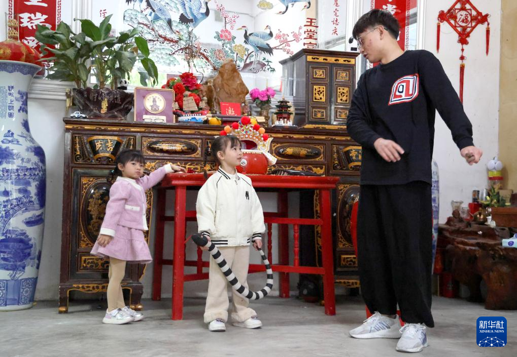 12月9日,庄恩琪穿上定制的服装在村里跳英歌。