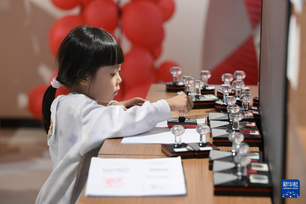12月29日,小朋友在位于海口的山海轩文创空间盖文创印章。