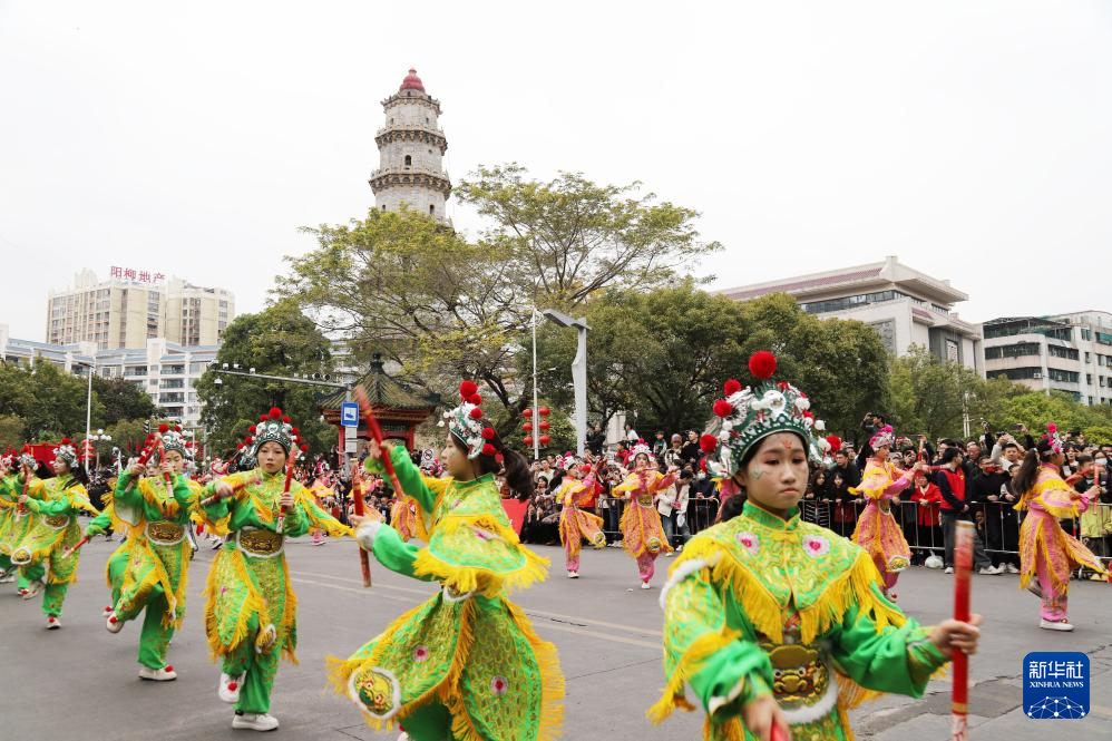 2月2日,女子英歌舞队在广东汕头潮阳区“中华英歌 舞动潮阳——2025年春节潮阳英歌嘉年华活动”中巡游表演。