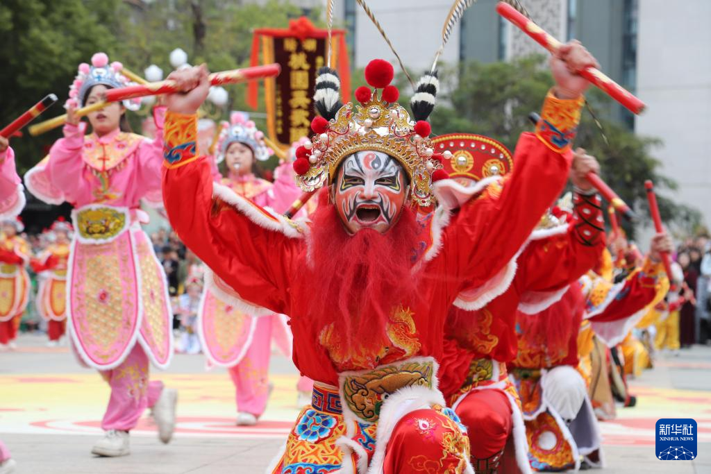 2月2日,英歌队在广东汕头潮阳区“中华英歌 舞动潮阳——2025年春节潮阳英歌嘉年华活动”中表演。