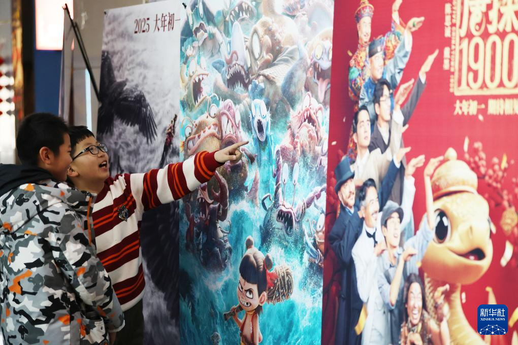 1月31日,观众在贵州省黔西市的一家电影城观看春节档电影《哪吒之魔童闹海》。
