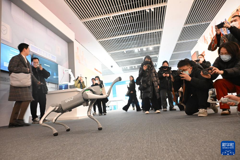 2月20日,观众在网络发展新图景成就展上拍摄一款机器狗。