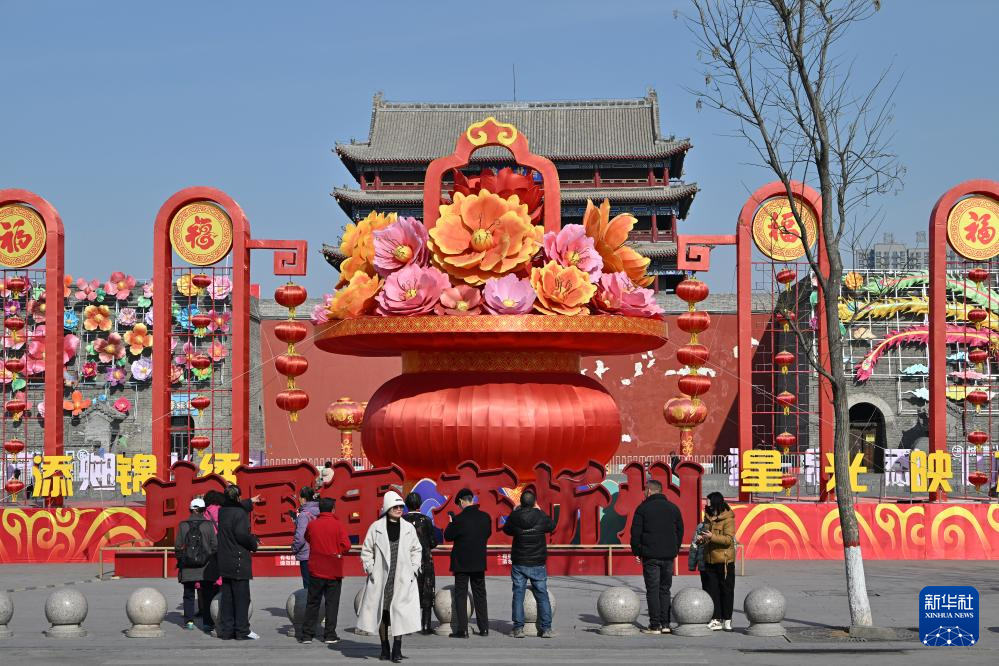 2月20日,游人在忻州古城拍照留影。