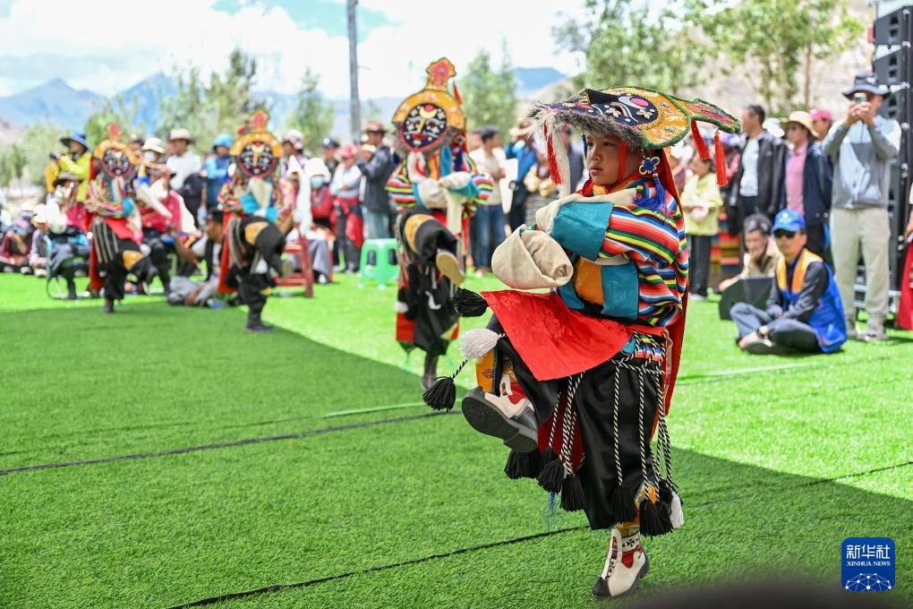 7月16日,果拉村少儿藏戏队的小演员在南木林县非遗公园内表演湘巴藏戏。