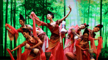 9月22日晚,在“相约敦煌”国际文化交流演出活动现场,来自甘肃省演艺集团的演员展演《乐动敦煌》选段。