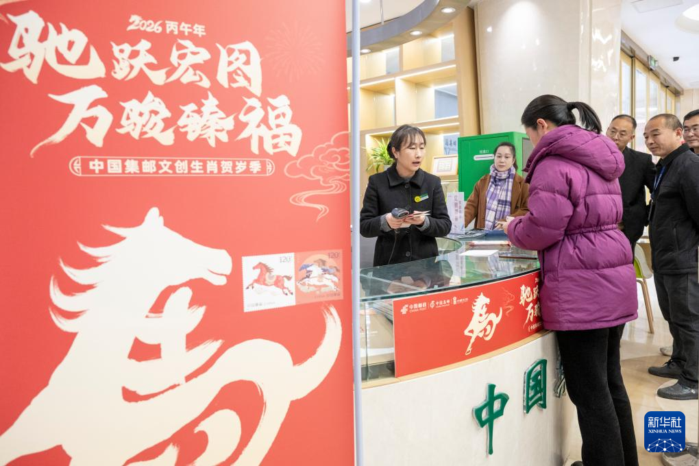 1月5日,在安徽安庆市一邮政网点,工作人员展示《丙午年》特种邮票。
