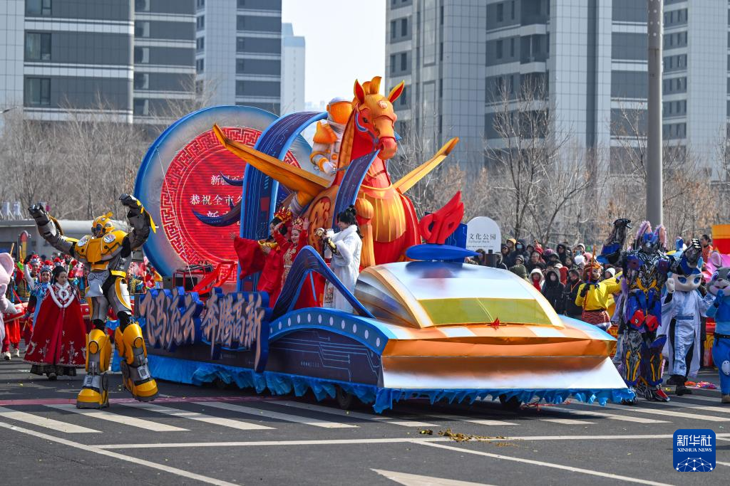 2月26日,第二届“打起手鼓舞起龙”乌鲁木齐社火巡游展演活动在新疆乌鲁木齐市文化中心举行。活动以“一车一主题,一队一特色”为亮点,通过主题花车串联整场表演,共2000余名表演者参与其中。