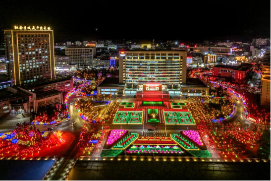 图为神东煤炭大柳塔煤矿所在的榆林市神木市,道路两侧的红灯笼透出了浓浓的年味。