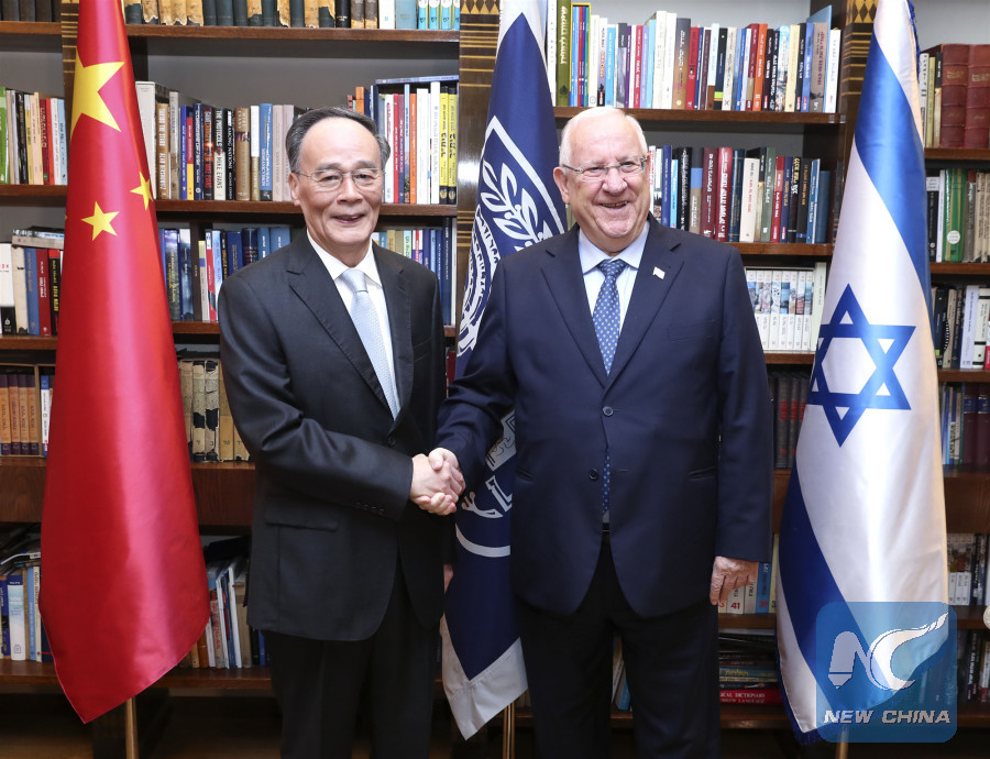 During his four-day stay, Wang met with Israeli President Reuven Rivlin and Prime Minister Benjamin Netanyahu, and co-chaired with the latter the fourth meeting of China-Israel Joint Committee on Innovation Cooperation (JCIC).