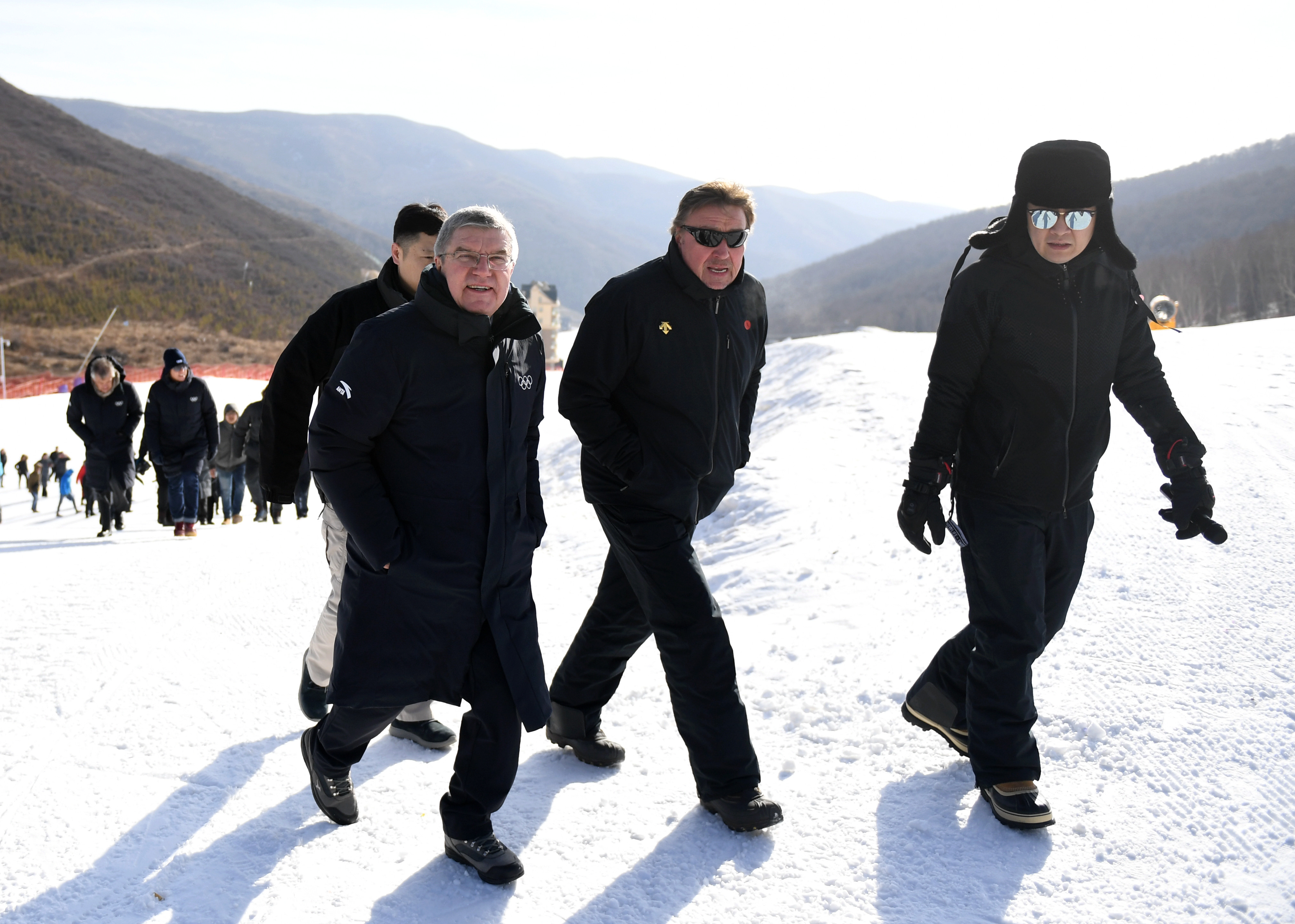 Thomas Bach (L), president of the International Olympic Committee (IOC), visits the Secret Garden, a venue for the Beijing 2022 Olympic Winter Games, in Zhangjiakou City, north China's Hebei Province on Jan. 29, 2019. (Xinhua/Zhang Chenlin)