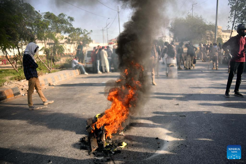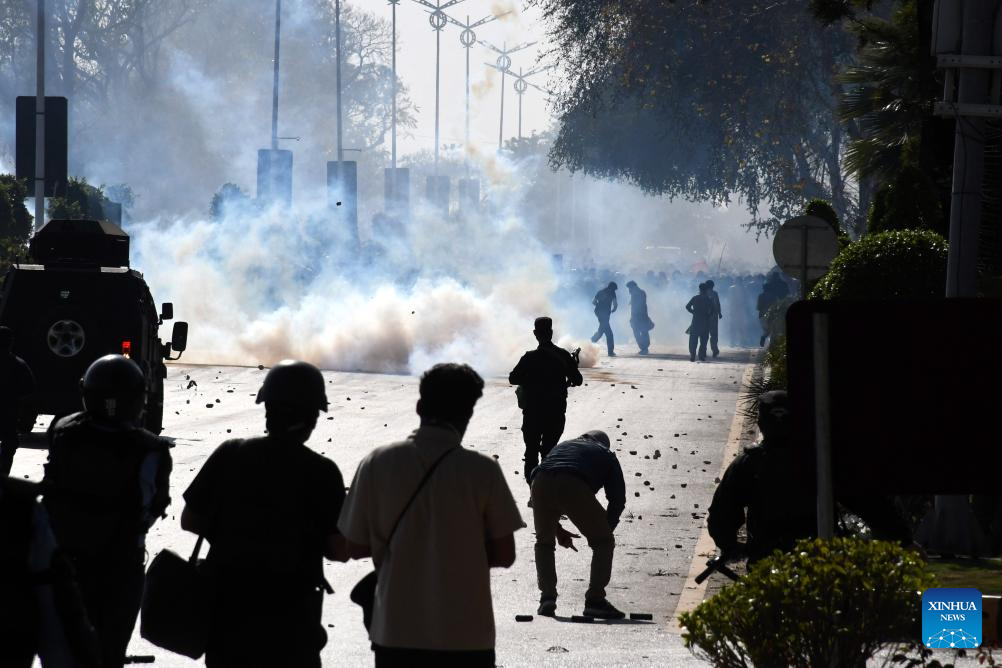 Law enforcement personnel clash with anti-U.S. protesters in Islamabad, capital of Pakistan, March 1, 2026. Twenty people were killed and over 100 others injured in anti-U.S. demonstrations in Pakistan on Sunday, police sources told Xinhua. (Xinhua)