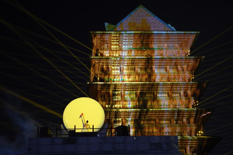 元旦期間,位于甘肅省蘭州市七里河區(qū)的蘭州黃河樓景區(qū)上演《大有蘭州》光影秀,表演分為“源之大河”“金之大城”“民之大韻”“蘭之大州”四個主題篇章,讓游客在黃河之濱感悟黃河文化。
