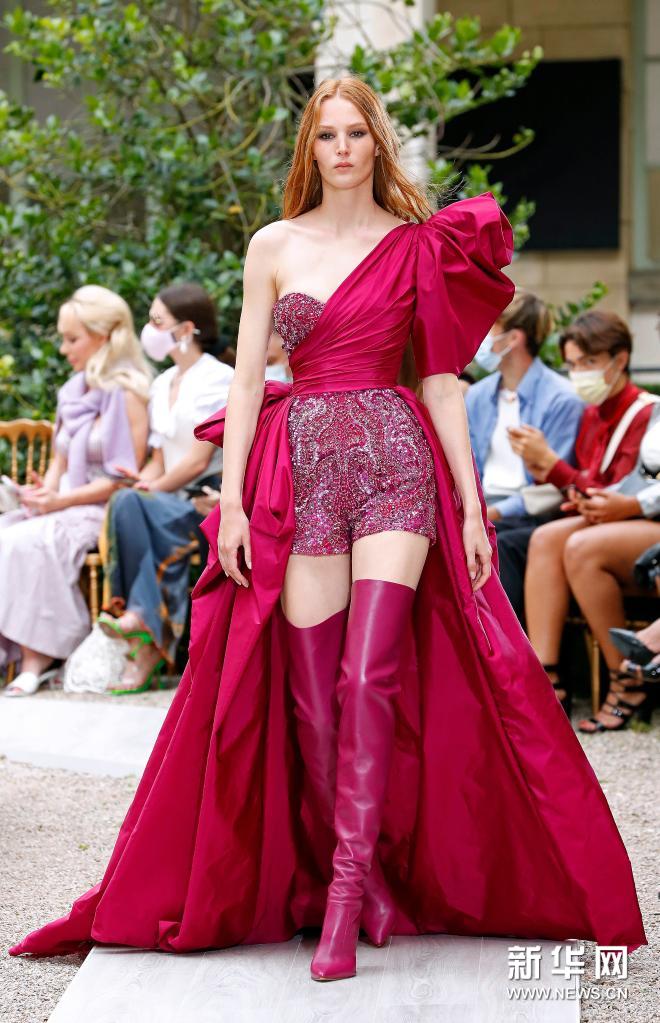 7月7日,模特在法國(guó)巴黎高級(jí)定制時(shí)裝周上展示Zuhair Murad品牌2021/2022秋冬新品。