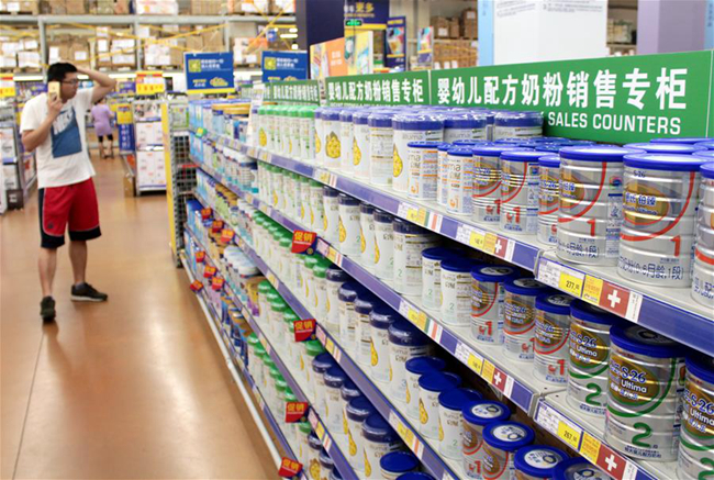 一超市里销售的奶粉。(图片来源:视觉中国)