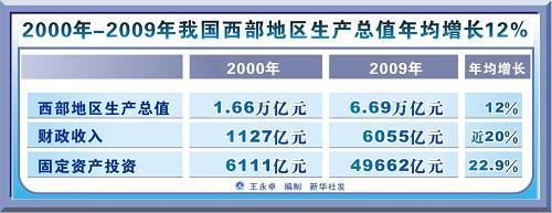 2000年-2009年西部GDP年均增長(zhǎng)12%