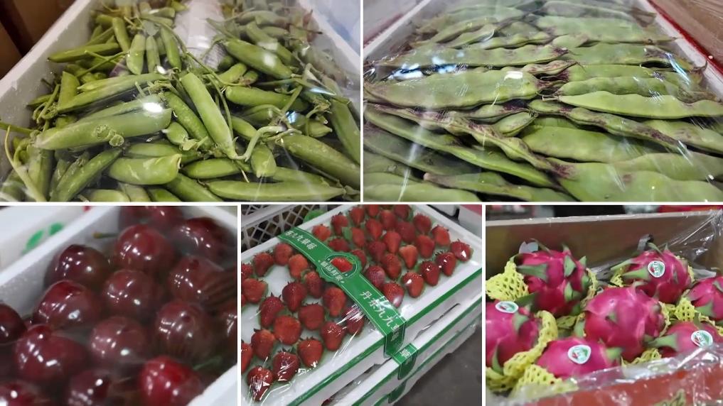 春节临近,位于辽宁省盘锦市的东北新发地农产品供应链中心,成了名副其实的年货中转站。每天,一车车的东北年货从这里发往全国,也有一车车的南方蔬果运抵这里。