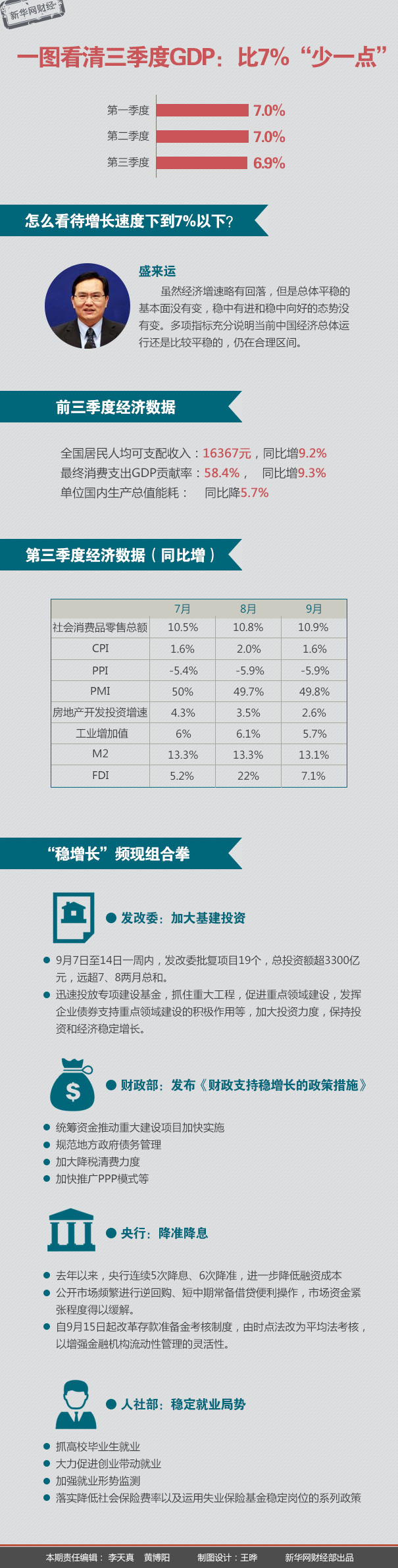 ????面對(duì)六年來首次“破7”的GDP數(shù)據(jù),盛來運(yùn)指出,雖然經(jīng)濟(jì)增速略有回落,但總體平穩(wěn)的基本面并未改變,穩(wěn)中有進(jìn)和穩(wěn)中向好的態(tài)勢(shì)也未改變。