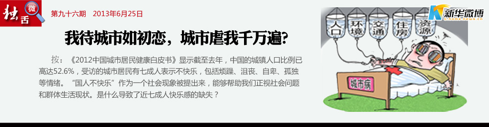 城市病了 光污染、空氣污染、噪音污染、熱島效應(yīng)、食品安全、交通障礙、高空拋物、樓宇消防電梯……吸的是霧霾,吃的是不放心食品,高起的物價(jià),昂貴的醫(yī)療,上學(xué)難,就業(yè)難,國人能健康嗎?能快樂嗎?